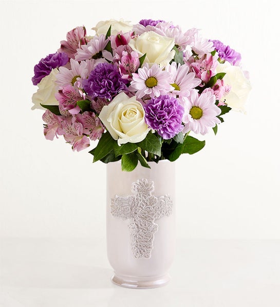 Capture the memory of a loved one with our beautiful Memory Garden Bouquet. A gathering of fresh roses, Peruvian lilies and more in soothing shades of lavender & white. It’s a comforting gesture that will help call to mind their smile, their laugh—and all the things that made them so special.